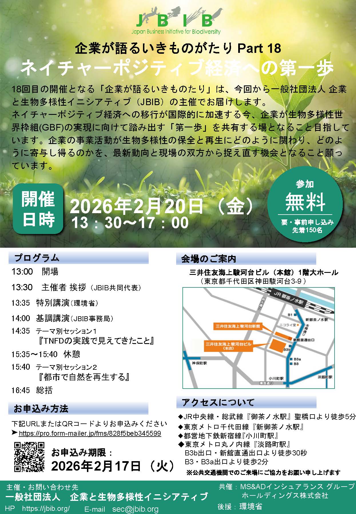 18回目となる今回から、一般社団法人 企業と生物多様性イニシアティブ(JBIB)が主催となり、このシンポジウムを継続することになりました。